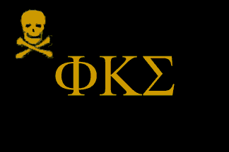 Phi Kappa Sigma was founded at the University of Pennsylvania in 1850. Its flag is black with the Greek letters of the name in old gold on the center and a skull and crossbones, also in old gold, in upper hoist.