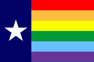 The Texas rainbow flag is derived from the state flag by replacing white and red fields by six rainbow colors. This is the third state gay flag in the USA, after those of Maryland and California, and is also another local gay flag which