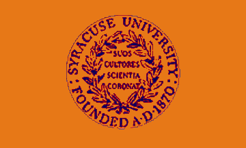 The New York City Syracuse Alumni center flies an orange flag with the university's seal in blue-on-orange. Given that it is flying from an official university facility and has the official seal of the institution, I suspect that this is the official flag of SU, but with all the caveats that I and others have recently posted about U.S. college flags I'm not about to swear to it.