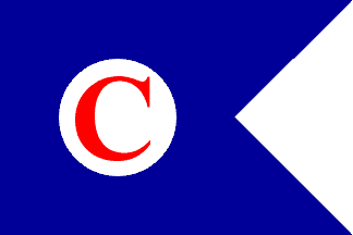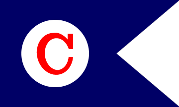 The flag was a blue swallowtail with a white disk and a red C for the owner,