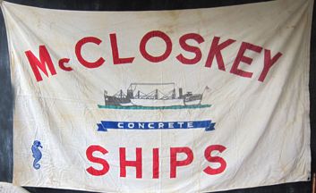A McCloskey concrete ship builder banner flag was posted on ebay for sale.