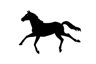 black horse in silhouette galloping.