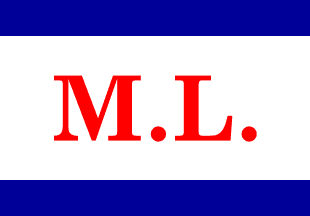 A white flag with blue stripes on the upper and lower edges and the initials M.L.