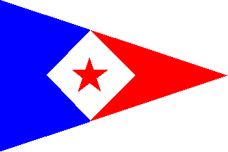 The Burgee of the Club shall be a pointed flag in red, white, and blue with the white vertical diamond containing
