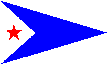 The burgee of the BYC, as shown graphically on the club's website, is blue with a white triangle charged with a red star placed along the hoist.