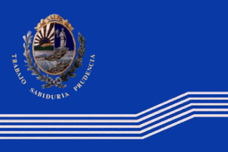 Se compone de un paño cuyo vuelo es 1.5 veces mayor que la vaina y pendiente. Trae en campo azul celeste el Escudo de Salto completo, colocado por su eje vertical a una distancia proporcional a la 3.5 parte del vuelo, medida desde la vaina hacia la pendiente, y por su eje horizontal a una distancia proporcional a la 3.1 parte de la distancia del borde superior al inferior medida desde el primero. Por debajo del Escudo, adoptando la forma de sector de arco las palabras " Trabajo - Sabiduría - Prudencia " con un tipo de letras apropiadas de color amarillo oro. En el tercio inferior en sentido horizontal cinco trangles blancos, de un ancho de 1/6 de vaina, que corre de vaina a pendiente, los que forman un ángulo de 45º grados en los 3/5 de su largo y así hasta los 4/5,volviendo a la horizontal en el último quinto "