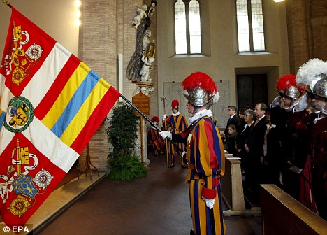 Here is the new Swiss Guard flag from story.news.yahoo.com.