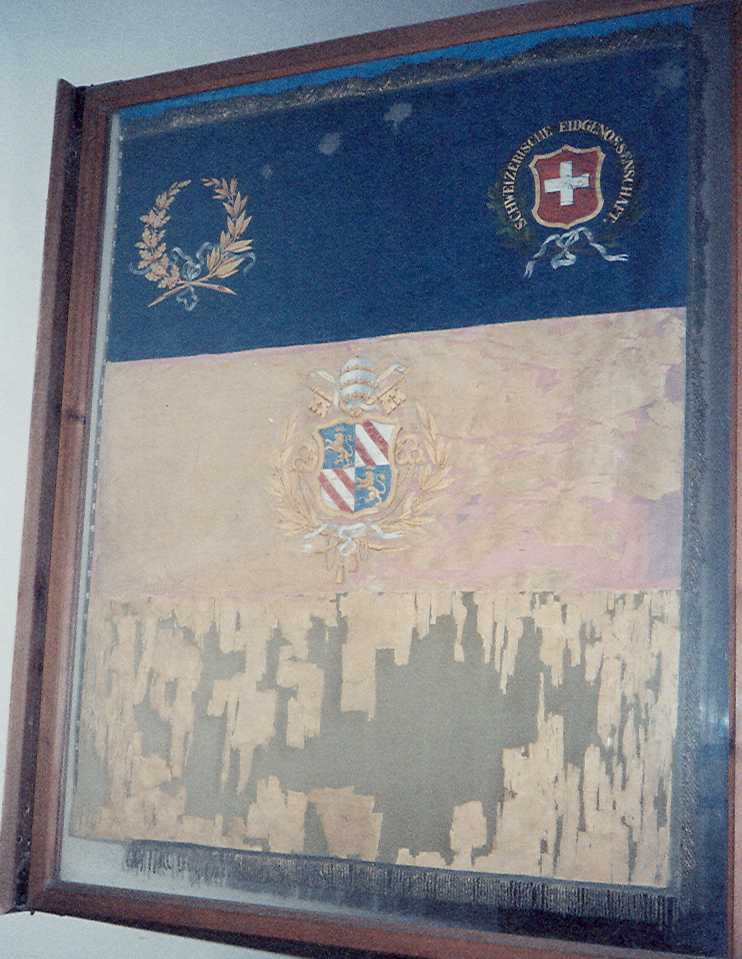 Blessing of the flag ceremony, with pictures of the flag (in French) at www.schweizergarde.org.