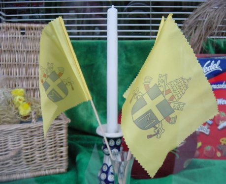 Paul II. Behind Jon Voight (as the Pope) is a flag being waved by
