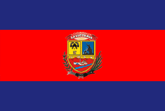 La Victoria city flag is blue-crimsom/red-blue with the Coat