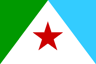 Colors: Emerald green, white and sky blue. Arrangement: Flag