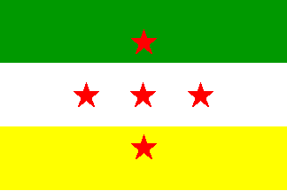 - a flag horizontally divided red-green-yellow with an arch of five white stars