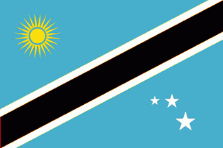 Flag: blue field crossed by the ascending black band edged white.