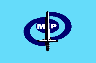 The CTPJ Flag consists of a sky blue field represents marian (after Virgin Mary, of the Catholic faith) and the white cross (of Jerusalem) represests devotion and the spirit of sacrifice which must caracterise and be a mark of every man and woman belonging to the CTPJ. On the center of the cross, we see the CPTJ's Coat of Arms: