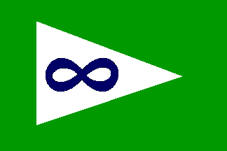 Flag: | A blue infinity symbol within a white triangle (burgee) set upon a green field |