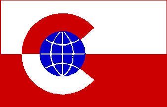 Flag: | Divided white over red vertically, offset a globe in blue with white lines of latitude and longitude, surrounded by a counterchanged "C". |