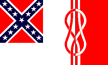 | Flag: | White and red, charged with a vexillological knot counterchanged. In the canton, the Third National Confederate flag. |