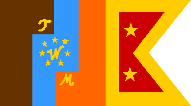 Flag: | A multi-colored flag of brown, blue, orange, gold with the letters "T", "W", "F" in the first three colors in gold, with 7 gold stars surrounding the "M" and two gold stars in the second brown field. |