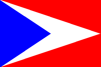 The Club´s flag was adopted on 6 March 1976 and consists of a red field (2:3) charged with a white triangle extending to the fly. Another blue triangle is laid on the white one. Its top extends to the half of the length of the flag. The author of the flag Zbyšek Svoboda designed also the emblem of the Vexillological Club by modification of the flag.