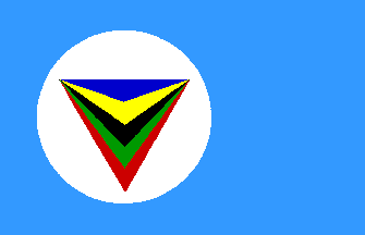Flag: | Blue, a circular white field, inverted triangles of blue, yellow, black, green and red. |