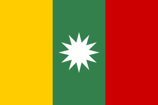 The flag is said to have been created by Nguyen Thanh Tri and Tristan Nguyen in Saigon in 1973, after the Paris Peace Accords were signed. It was re-introduced in San Francisco, USA in 2007 and is also known as the Reconciliation Flag of Vietnam. It is a yellow-green-red vertical tricolor with a white twelve-pointed star in center of white field. The ratio is 2:3. Yellow color is the symbol of Asia and Vietnamese people, green symbolizes peace and red stands for the "revolutionary enthusiasm", that is, readiness to make changes in order to improve the life. The star is white, which stands for the peace and reconciliation and also for the freedom. The number of points, corresponding to the number of years in Far Eastern calendar cycle, stands for the freedom, equality, and pluralism - the values expected to be the most respected in a new Vietnam.