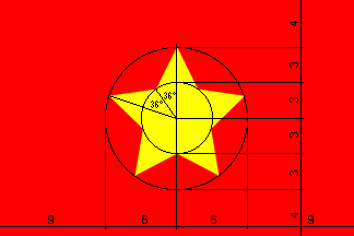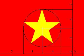 The star in the 1945 flag is made in such a way that the inscribed circle (i.e., the one touching the inner angles) is half the diameter of the circumscribed circle (that touches the outer points). Adopted 29 September, 1945.
