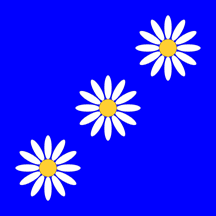 chose “a flag : plain blue, with white cross bearing in its center a red