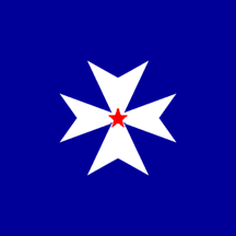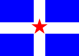 white cross (symethric, not Scandinavian) and five-pointed red star in the