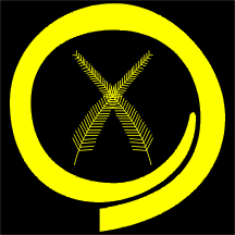 triangle contains yellow boar husk and two fern leaves within.