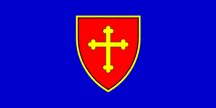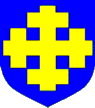 The heraldic term for a cross which may or may not extend to the edges of a shield, flag, canton or panel, but which has four further crosses (or other charges) arranged around it – a cross cantoned (see also ‘canton 3)’, ‘cross 1)’, ‘cross pattée’ and ‘cross potent’)