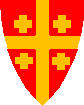 b) A cross whose centre is obscured by a charge (as illustrated below) could be described as either a cross gyronny or a cross-counterchanged, however, the term ‘cross quartered’ has now come into use - see ‘cross quartered’.