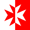 a cross-couped counterchanged" or “per pale argent and gules a Maltese Cross counterchanged” as shown below.