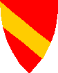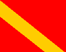 - (adv) A heraldic term for when the main ordinary on a shield, banner of