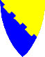 or the division line on a shield, banner of arms or a flag is bent or bowed – bowed, bent or ployé