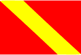 b) At the time of writing it is unclear as to whether the flag having a straight-sided but angled fly (as illustrated below) should be considered as “engrailed” or “stepped” – see ‘stepped fly’.