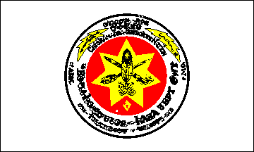 Hunetlanuhi Tohewa, meaning "Great Spirits" (sample seal provided by the Chickamauga Cherokee Tribal Headquarters). These are the names of the Supreme Being of the Native and Christian faiths in the Cherokee language. Its location symbolizes God's position over all things. The tribal name on the seal appears in red (but not on the flag), for the "blood of life given by our mothers and shed for us by our warrior fathers".