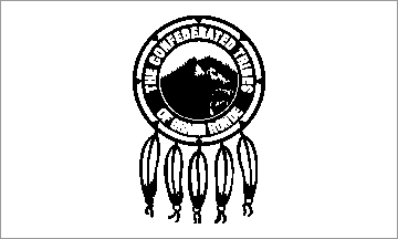 The Tribe's flag resulted from a contest held after the Grande Ronde regained federal recognition; the winner received US$50. Although the seal appears prominently on tribal publications, and letterheads, the flag has not yet been adopted by tribal council resolution.