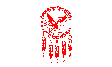 The flag of the Paiute Tribe of Utah is white with the tribal seal in the center in red and white. That seal was adopted by tribal resolution 97-20 on 13 May 1997 and signed into law by General Anderson, the tribal chairwoman. The seal already had been used on the floor of the tribal gymnasium and had been incorporated into the Tribe's new headquarters in Cedar City, Utah.