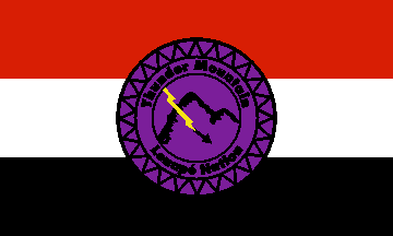 Serving as a symbol of the Thunder Mountain Lenapé is a flag of three horizontal stripes, red over white over black. These are three essential colors in the art of the Lenape people and can be seen in the flag of the Oklahoma based Delaware. They can be seen recalling the three main dialect groups of the Delaware people - the Munsee, Unami, and Unalactigo or the three traditional clans the Turtle, Wolf, and Turkey.
