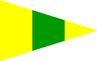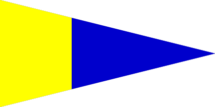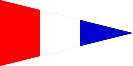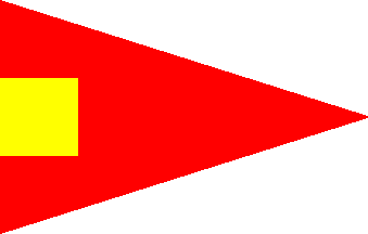 These signal flags are from a flag plate of house flags. They are all 1:2 versions of the ICS flags, except the C-G range, that is composed of triangular flags (also in proportions 1:2, with the following characteristics: