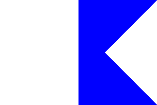 Triangular bicolor pennant divided vertically into yellow beside blue.