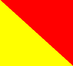 Red over yellow divided per bend dexter (from top-left to bottom-right)