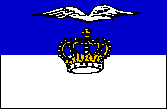 In August 1974 French police arrested a swindler who styled himself the Grand Duke of the Principality of Freedomland, Count Othmar di Schmieder Rocca-Forozata. It would seem as though this Freedomland was not the same territory as Cloma's Freedomland; contradictorily also called the Republic of Koneuwe, it was described as consisting of 74 islands 2,000 miles from Borneo. The flag of this Freedomland was described as a horizontal bicolor of blue over white with a gold crown in the center surmounted by a white flying albatross.