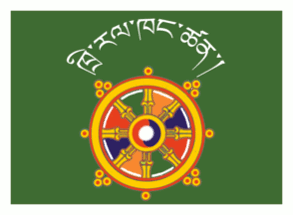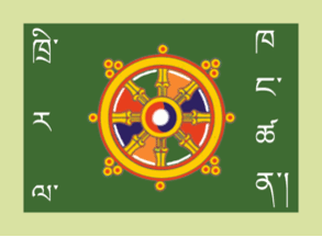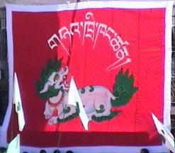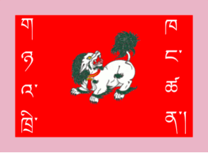 khamtsen in curved Tibetan script and they have a white border. The small flags