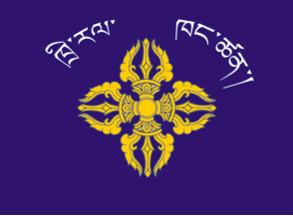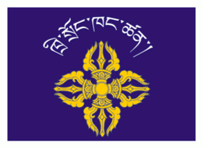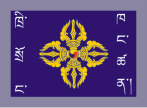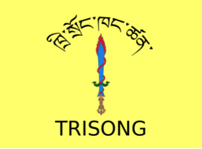 The Trisong flag has a blue field and shows a golden double-vajra.
