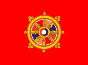 The Triral flag has a green field and shows an eight-spoked wheel, the spaces
