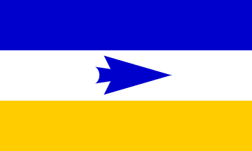 The triband blue-white-yellow with an arrowhead is the Bandera de las
