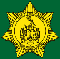 The flag of the Law Enforcement Division of the Ciskei Police comprises three horizontal stripes of white, dark green and white, with the Ciskei national flag in the canton. The central green stripe is double the width of the white stripes. In the centre of the green stripe is the badge of the Division which comprises a black outline of the Ciskei Arms in the centre of a yellow background of a rayed seven pointed star, surrounded by an annulet bearing the words I CANDELO LOGCION. MTHETHO above and LAW ENFORCEMENT DIVISION, below, all in black letters. Beneath the arms is the Ciskei motto, SIYAKUNQANDWA ZIINKWENKWEZI which translates as "Reach for the Stars".