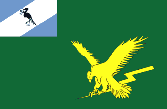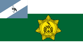 As with the Ciskei Defence Force and Ciskei Police flags, a Ciskei national flag only one-ninth the size of the field appears in the canton. The blue crane has, incorrectly, a twig in its beak although examples as such were manufactured as indicated above.
