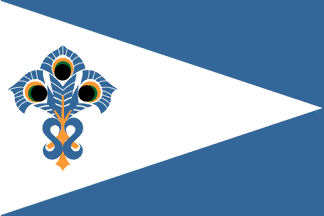 "On a blue flag, proportion 3 x 2, a white pile charged